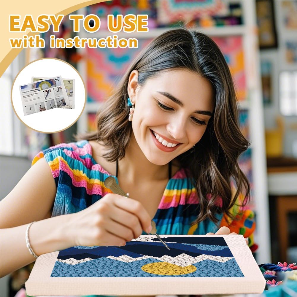 Doodlream Mountains DIY Punch Needle Embroidery Kit for Adult Beginner, 9.4" Landscape Sunrise Punch Stitching Craft Set for Starter with Frame, Fabric Pattern, Threader, Yarn, Pinch Needle